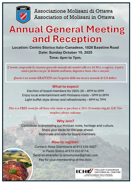 Annual General Meeting and Reception, Centro Storico, October 19, 2025, 4pm to 7pm
